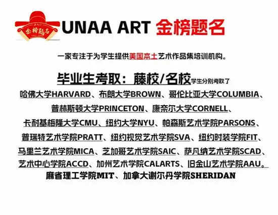 金榜题名-「美国艺术高考学院UNAA ART」专注于为学生提供美国本土艺术作品集培训机构。