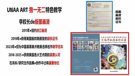 特色教学:版图画派是李校长于2011年纽约创建的,2019年获得美国版权局颁发的版权证书,亦是中国高等美术教育名师名作教学范本,得到美国各大艺术院校的高度认可,在作品集创作中占有占据重要地位。