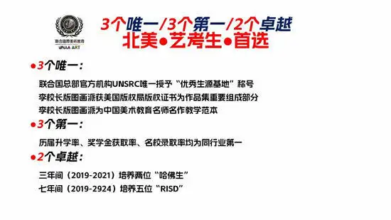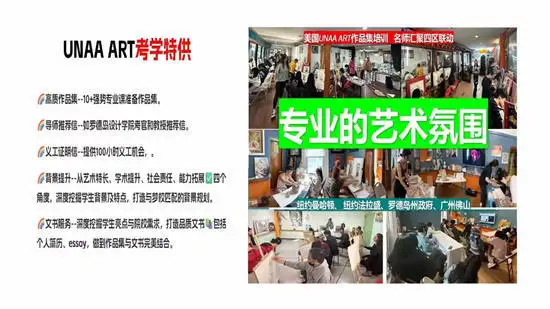 特别指出:美国艺术院校申请与国内完全不同,很多同学其实并不了解, 作品集怎么做? 文书怎么写? 择校择专业怎么选? 怎么安排自己的申请规划?申请院校有哪些技巧等等。美国UNAA ART高考学校为考生量身定制升学规划。