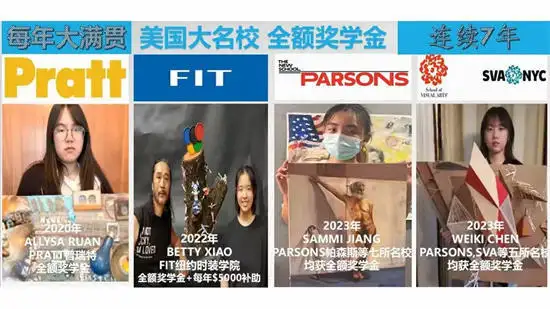 2018-2025毕业生考取:藤校/名校学生分别考取:哈佛大学HARVARD、布朗大学BROWN、哥伦比亚大学COLUMBIA、普林斯顿大学PRINCETON、康奈尔大学CORNELL、卡耐基梅隆大学CMU、纽约大学NYU、帕森斯艺术学院PARSONS、普瑞特艺术学院PRATT、纽约视觉艺术学院SVA、纽约时装学院FIT、马里兰艺术学院MICA、芝加哥艺术学院SAIC、萨凡纳艺术学院SCAD、艺术中心学院ACCD、加州艺术学院CALARTS、旧金山艺术学院AAU、加拿大谢尔丹学院等顶尖学府。