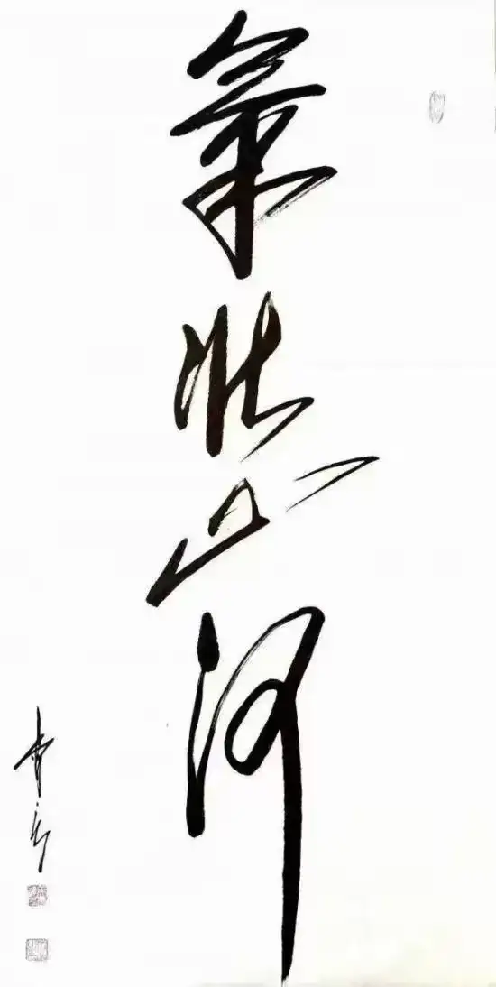曾庆将书法升华为生命哲学的视觉表征。他解构"人”字的武学意象:一撇如拳收蓄势,一捺似剑展锋芒,两笔顿挫立定人生根基。他言人生就如一条弯曲的线,这种写书法道人生的创作观,使其作品超越形式美而深具精神图腾性。中国美术馆收藏的《山河壮》中,蜿蜒连绵的线质暗合命运起伏,轻重疾徐的节奏隐喻生命律动。央媒评价其字体"清秀险峻",实因每道笔画都是武者心象的外化~瘦金体的锐利锋芒被武功内力柔化,形成刚柔相济的独特张力。