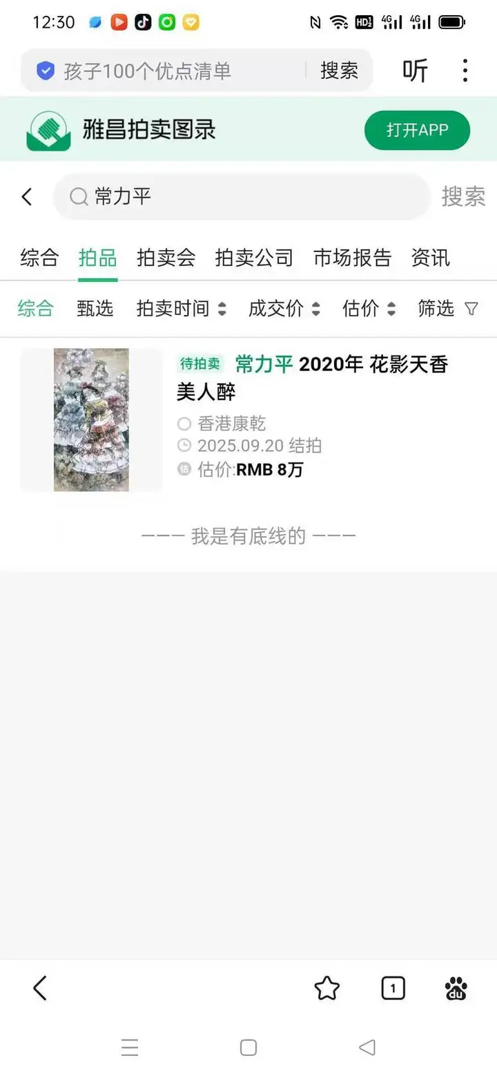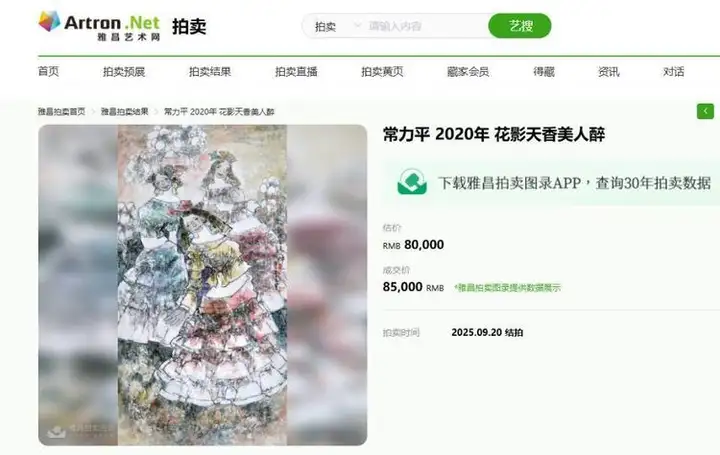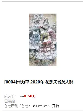 香港康乾拍卖,估价预展8万人民币,成交落锤价8.5万人民币,归国画家常力平