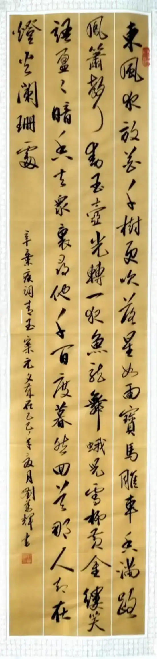 刘万辉的书法作品风格独特,兼具传统与创新。他的笔法灵动而不失沉稳,线条刚劲有力又饱含韵味,每一幅作品都仿佛在诉说着他对书法艺术的热爱与执着。在创作过程中,他深入钻研历代书法名家的笔法与神韵,博采众长,逐渐形成了自己独特的艺术风格,其作品既传承了中国书法的深厚底蕴,又展现出新时代的创新精神。多年来,刘万辉在书法艺术的道路上不断探索前行,收获了累累硕果。2011年,2012年,书法作品在中央数字电视台书画频道入围“迎新春书画作品展播”,在《中国贸易报》艺术走廓专栏上刊登, 2014年,书法作品入展在由中国书协中央国家机关分会主办的第一届中韩议员公务员书法展;2018年、2019年,书法作品入展由《书法报》社举办的第十一届、第十二届中国重阳节书画展; 2024年1月,书法作品在长江书画教育推广中心、湖北画报社举办的纪念毛泽东同志诞辰130周年全国中老年书法大展中获三等奖。他的作品不仅在国内屡获殊荣,还在国际上大放异彩,2011年书法作品还赴日本、韩国、法国、加拿大、澳大利亚参加国际书画交流展,2025年4月,创作的书法“构建人类命运共同体”被中名联推荐作为国礼被喀麦隆大使馆收藏,将中国书法艺术的魅力传播到世界各地,促进了中外文化的交流与融合。近二十年来,刘万辉的作品还入编《全国书法美术优秀作品集》、《全国名家书画精典博览》等多部书画集,成为书法艺术宝库中的璀璨明珠。