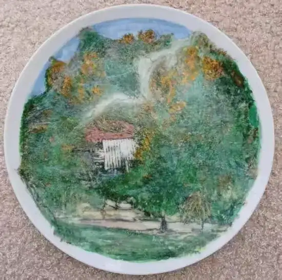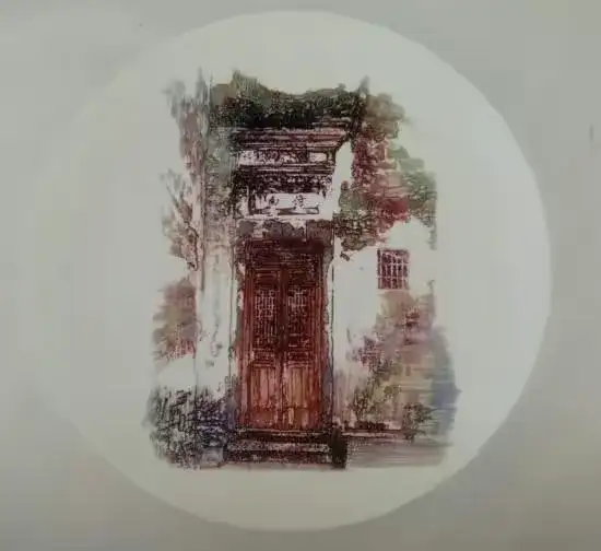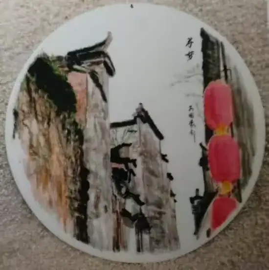 瓷刻艺术盘 (古宅)直径:35.5cm刻于:2007.1.7.
