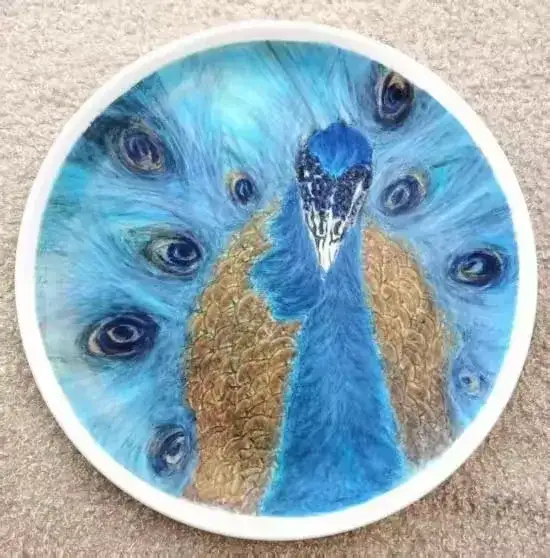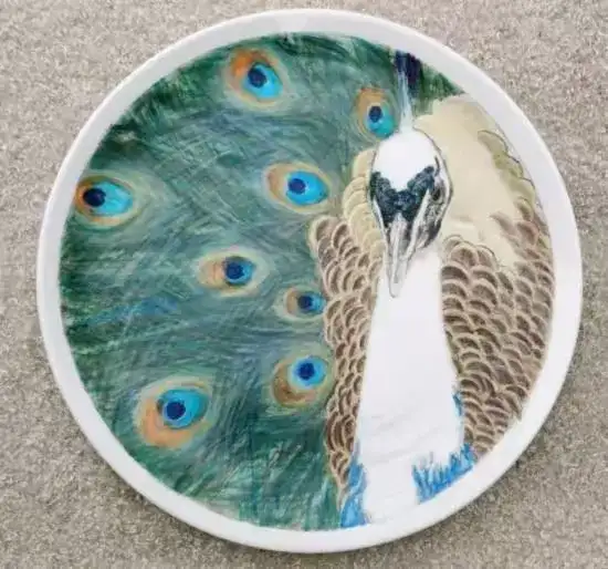 瓷刻艺术盘(孔雀)直径: 刻于:2021.6.30.
