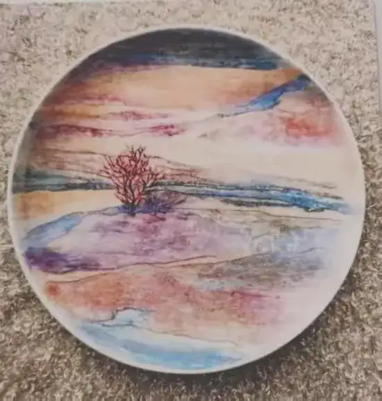 瓷刻艺术盘(旷野)直径:26.3cm刻于:2016.10.5.