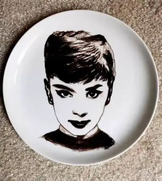 瓷刻艺术盘(奥黛丽.赫本)直径:26.5cm 刻于:2020.5.27.