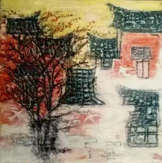 瓷刻版画(石榴花开了)尺寸:19.6✕19.6㎝ 刻于:2008.3.