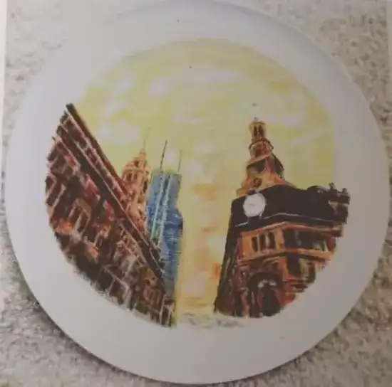 瓷刻艺术盘(晚霞.上海)直径: 31㎝ 刻于:2017.3.30.