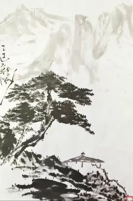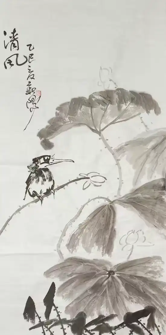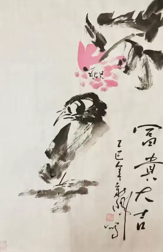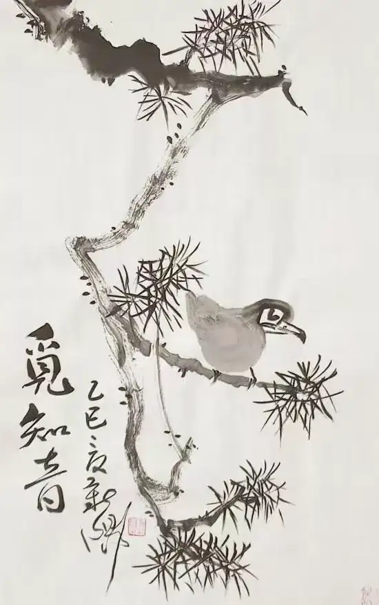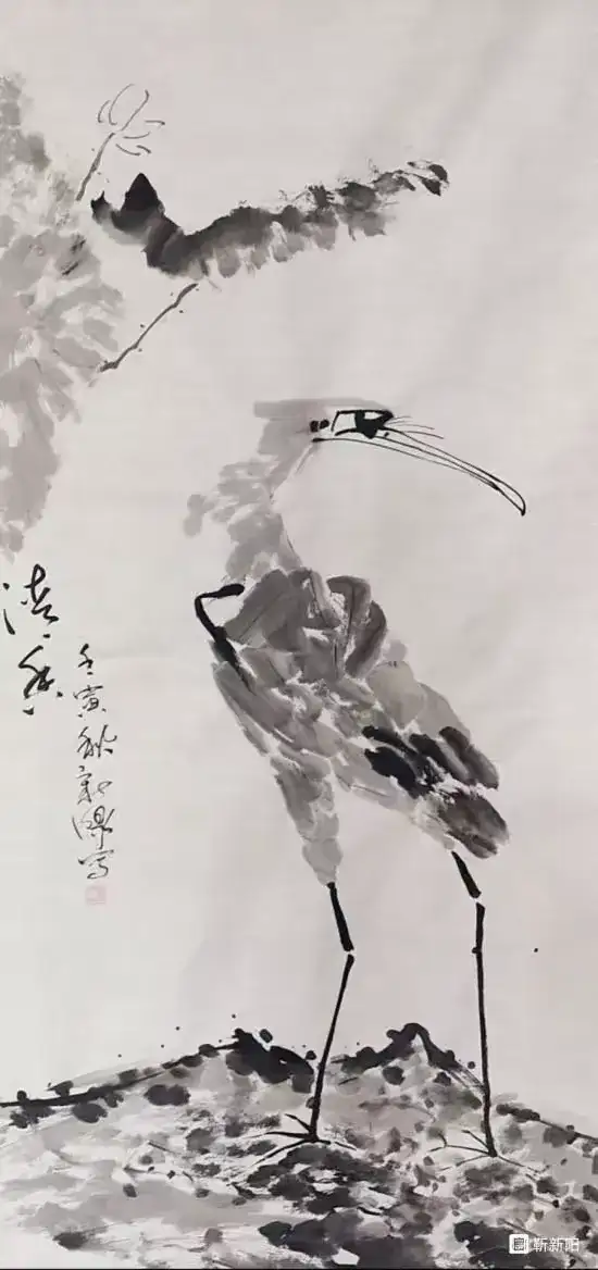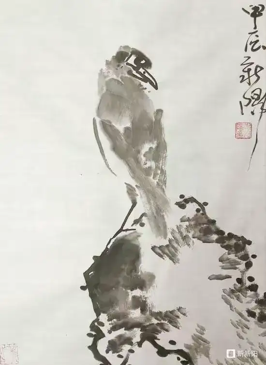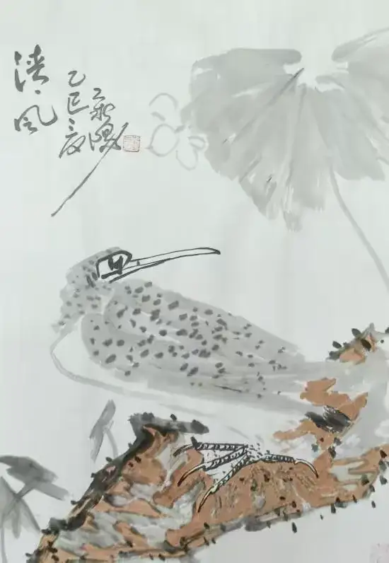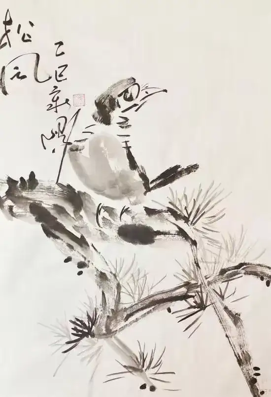 《雄鹰图》充满展示着他花鸟写意的高度,用精湛的笔墨技巧塑造超然物外的精神境界。雄鹰志远,为天地张目,可以在浓淡相宜的墨色间,以粗犷而不失细腻的笔触勾勒出傲然与矫健印象。笔墨筋骨如铁,气象浩荡如虹,凌云壮志与自由不羁思绪扑面而来,从画里透露出的强大的动感。他的画作不仅是视觉艺术的上品,也是激励精神的经典,看其画涨精神,画以载道,笔墨写奇观!