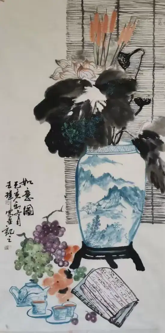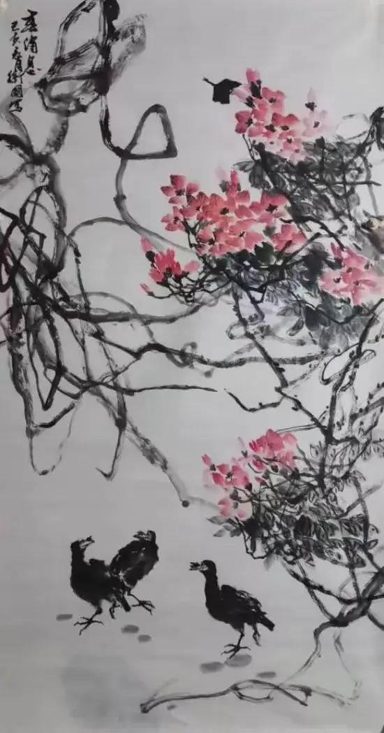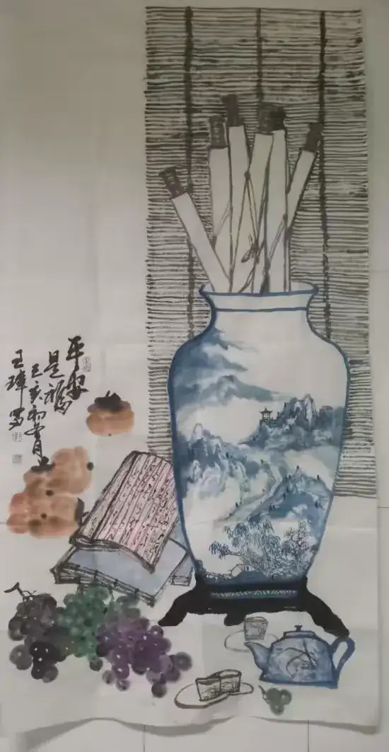 王卫国,又名王玮,山东潍坊人。书香门第,喜榜书擅大写意花鸟画,涉山水及人物画。