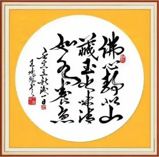 斗方“佛心静似山藏玉 书味清如水养鱼”。