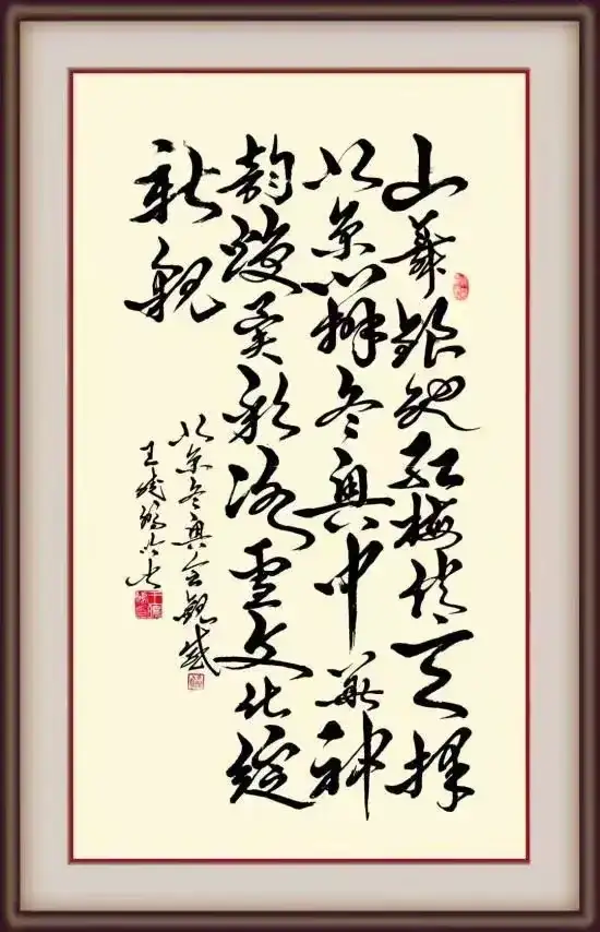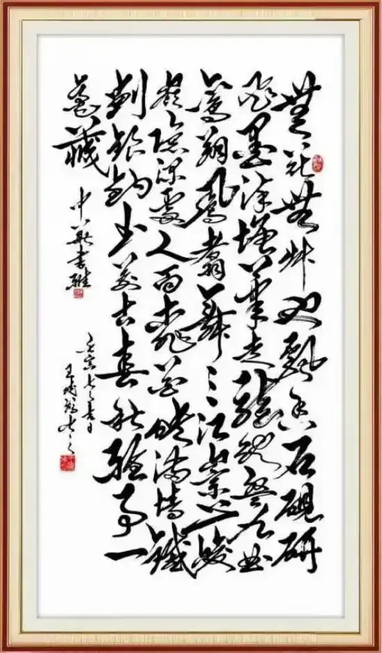 他的书法艺术,是深厚学养与生命感悟在纸上的交响。早年新闻生涯与文学积淀,赋予作品以深刻的洞察力与人文情怀;暮春时节为感念游僧所书的《致太白佛僧》,则是艺术生命觉醒的序章。**这一从乡村教师到国际艺术大师的独特历程,使其作品既扎根于黄土地的质朴浑厚,又饱含文心雕琢的典雅境界。**其字迹融古法于己意,既见传统碑帖的厚重筋骨,又饱含文人书卷的清雅气韵。笔下诗文非仅技艺展示,而是将生命体悟化入墨痕,字字如心迹流淌。**尤为可贵的是,他将书法艺术推向了多维度的创新表达——作品不仅登上高等教育教材,更被多国铸为“国家名片”珍邮,与景德镇陶瓷、酒文化完美融合,开创了“国礼艺术瓷器”这一文化传播新范式。