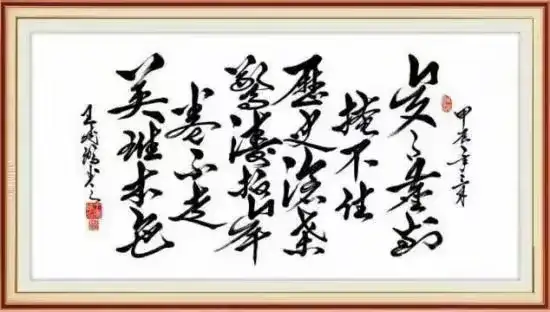 释文:未曾清贫难成人,不经打击老天真。自古英雄出炼狱,从来富贵入凡尘。醉生梦死谁成器,拓马长枪定乾坤。挥军千里山河在,立名扬威传后人。