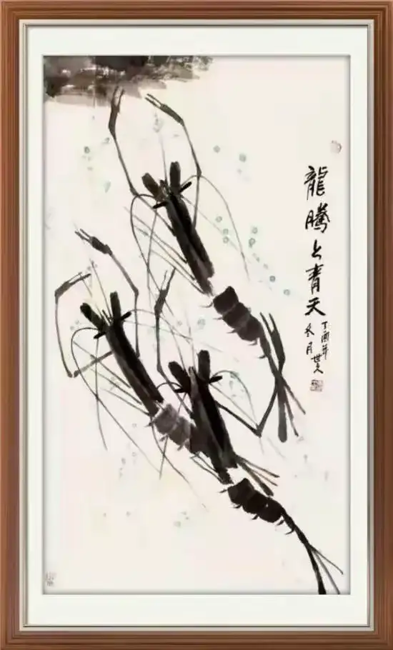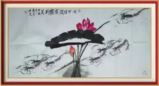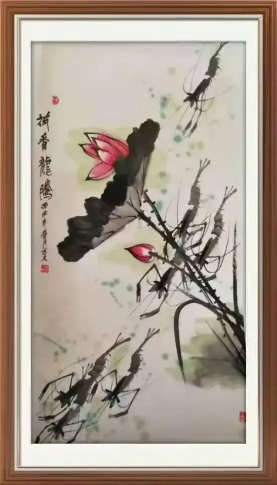 他的虾画与泼墨荷画同作一题,有骨画法与没骨画法相依相映,把虾的灵与荷的禅融为一体,虚实相生,动静烘托,不但有赏心悦目的观赏性,也有雅饰厅堂的文化装点效果,有这样一幅荷池龙虾挂在雅舍,可以让空间的文化品位立增数倍!久观耐品,文人画的文化气韵,总是扑面盈心,令人过目不忘记,蓬荜生辉,修身益心!这就是先生的画在专业圈大众审美圈口碑皆显不俗的重要原因。他的画可饰万家屏障,自是文化弘扬的立世功勋!