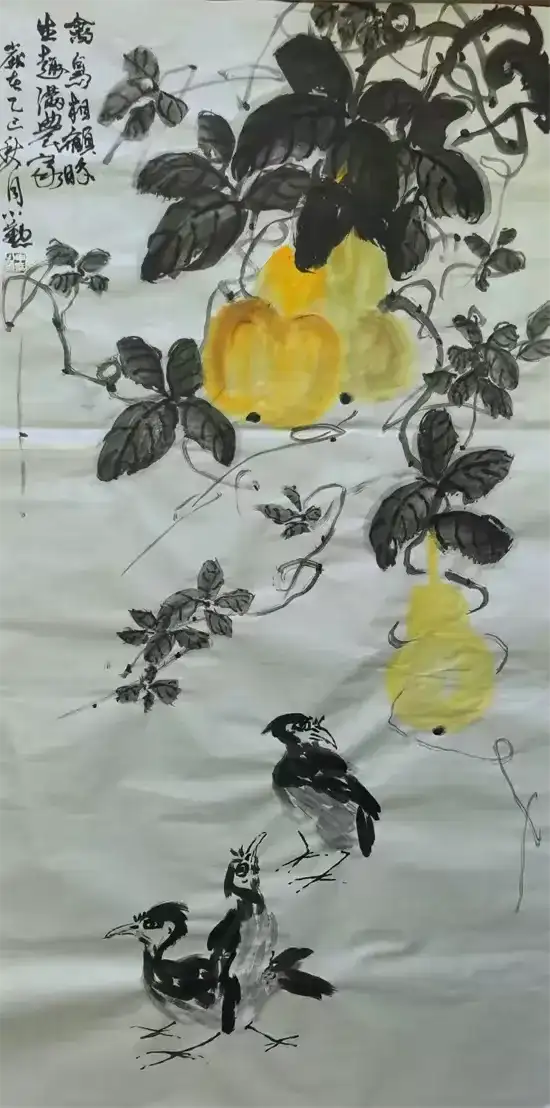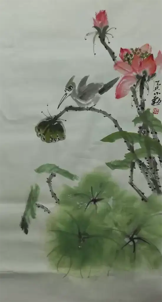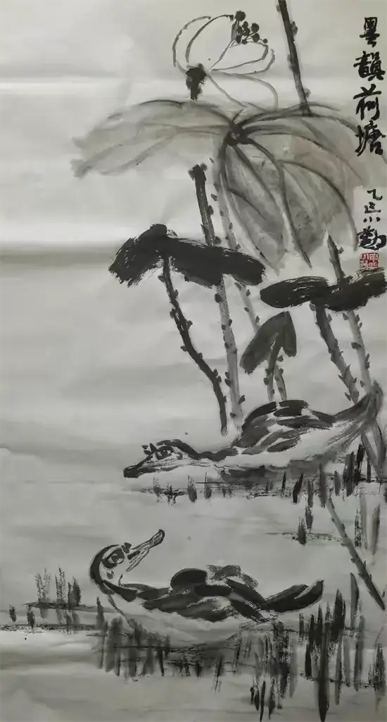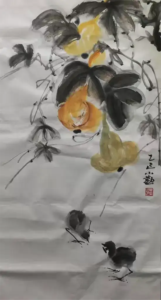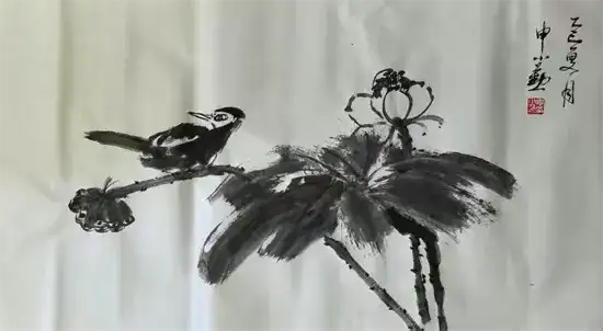 申小勤深研八大山人孤高简远之境,融徐渭泼墨狂放、昌硕金石苍劲、白石翁天趣童真、板桥竹石风骨、宾虹积墨浑厚、抱石散锋酣畅 、莫奈的光影色彩理解 。