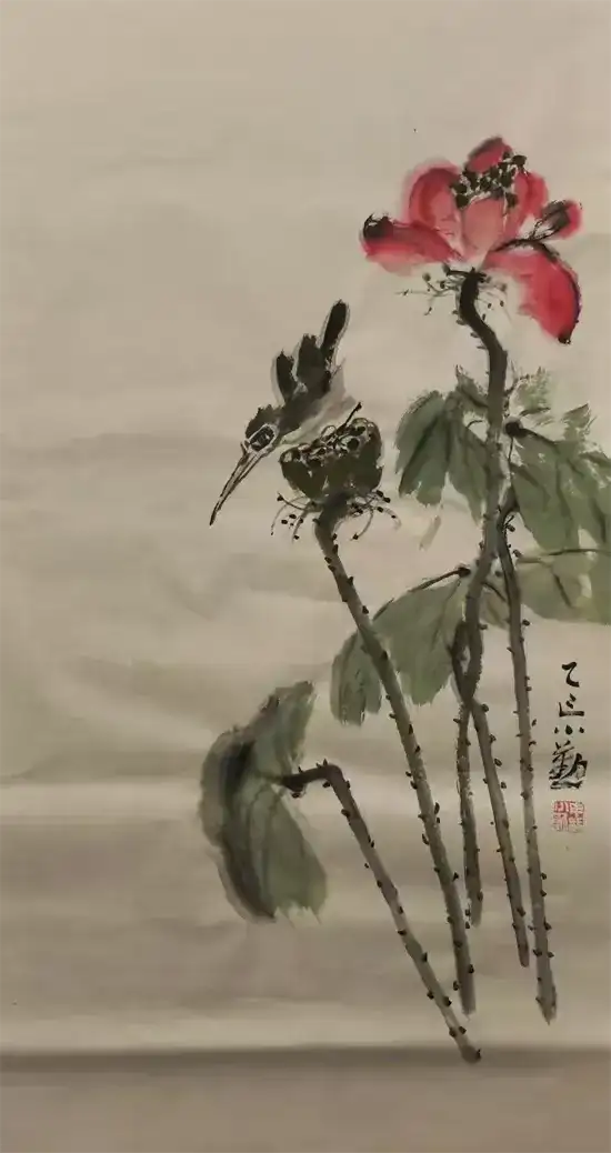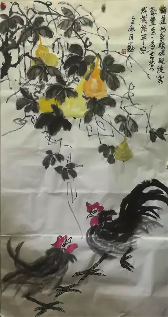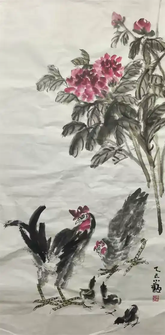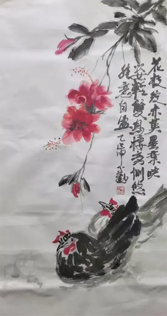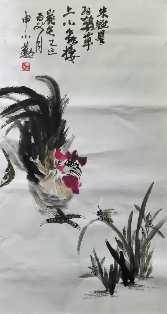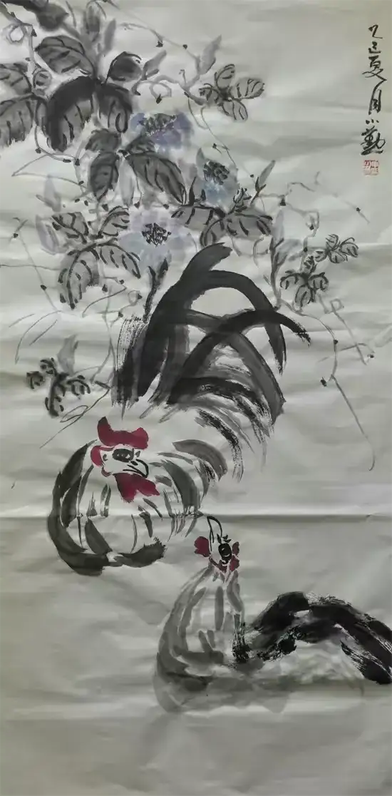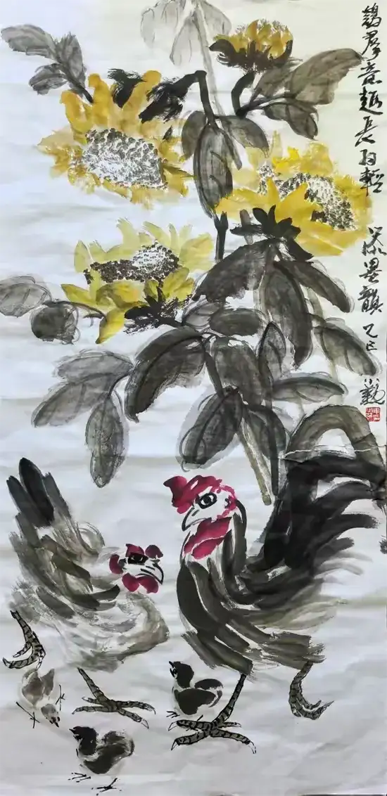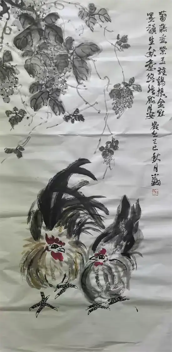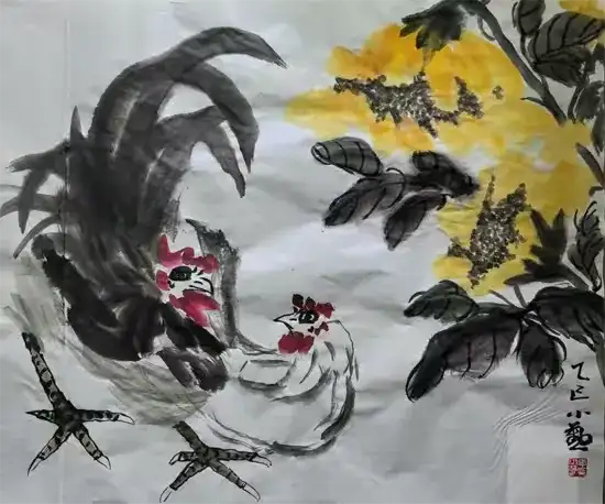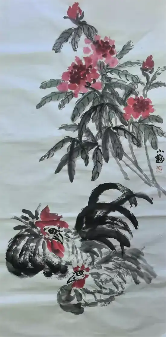 她擅长画禽鸟、兰花,犹喜画鸡;画作中,那些鸡的形象无疑是最为引人注目的;在她的笔下,鸡的眼眸呈方形,目光如炬,鸡的形象被刻画得栩栩如生,犹如寓言中的神鸡降临凡间;这些鸡的眼眸形状独特,生动地描绘出了鸡的神态,流露出一种难以言喻的灵性,这些鸡的形态各异,有的威猛雄壮,有的温婉柔美,展现出了鸡的不同面貌和性格。她的绘画风格独特,色彩运用恰到好处,使得画作中的每一处都充满着深邃的意境,以其独特的绘画风格为我们呈现了一幅幅别具一格的艺术画卷。