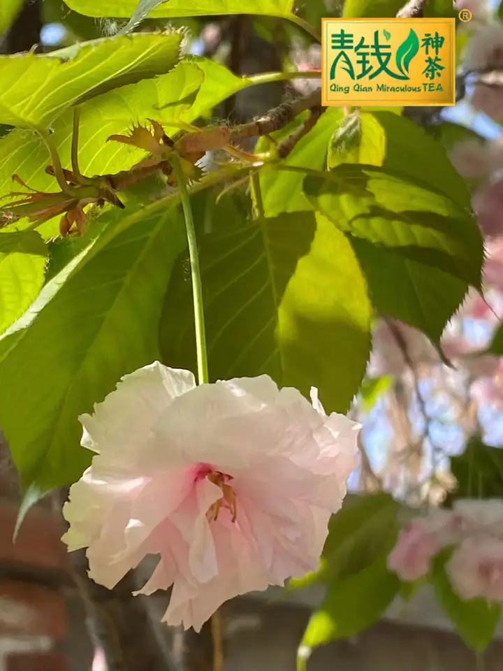 满树修长绿叶,垂悬圆币青花。身姿高立触云霞。为山妆好景,去病是奇葩。