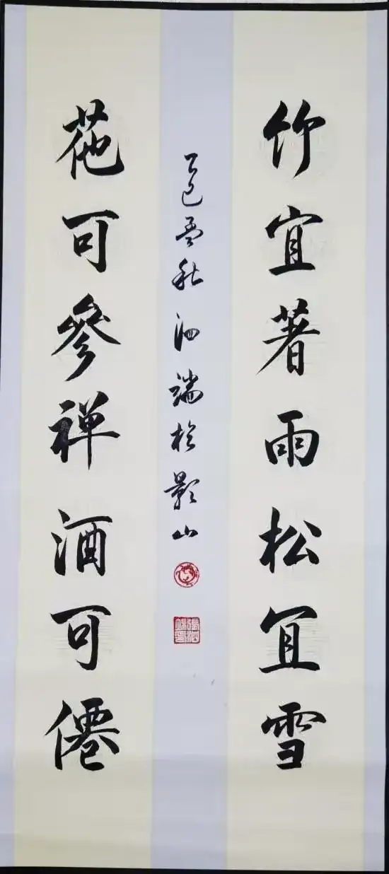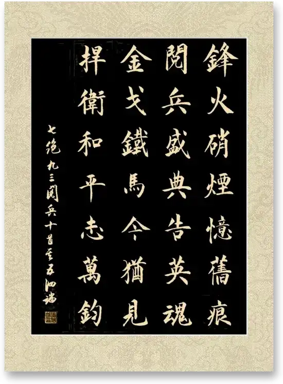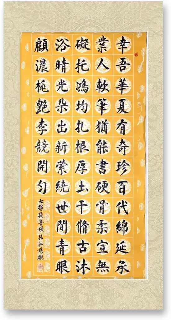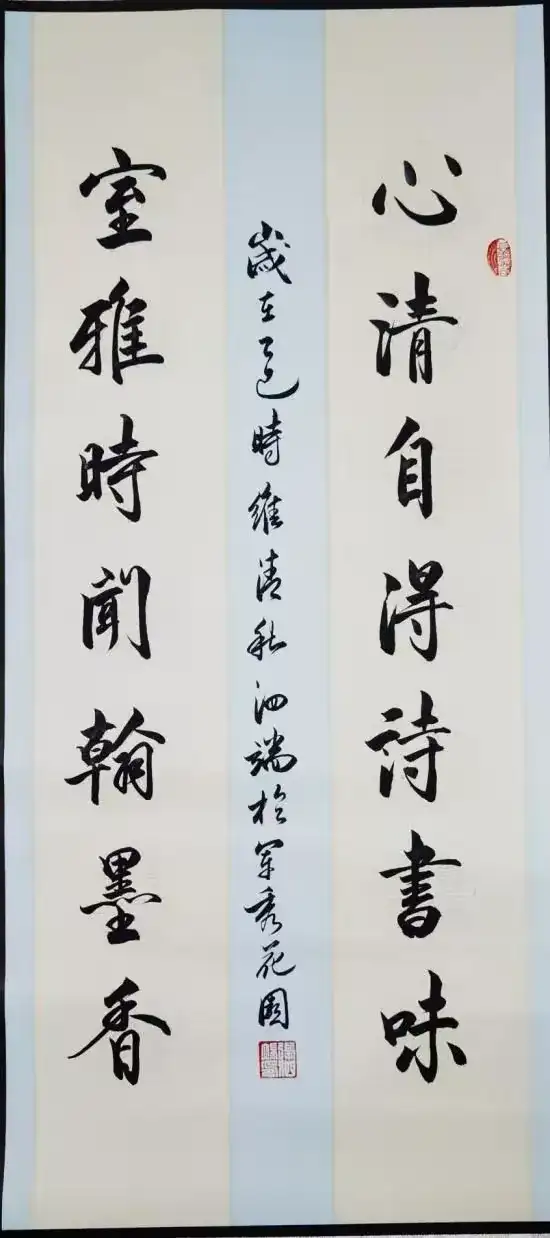 楷书作品,既有《多宝塔》的端庄谨严,又有棱角分明、骨力刚劲的柳书风貌,在颜筋柳骨的圆融中让人体味到一种全新的审美愉悦。