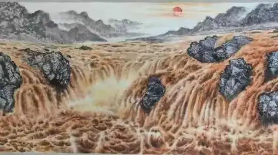 “狂”是他情感的宣泄。在表现雄奇、险峻的山水时,李咏秋的笔墨会变得“狂放”——大刀阔斧的皴擦,浓淡对比的墨色,甚至略带夸张的构图,都传递出他对山水的激情。比如《黄河咆哮》,他用厚重的墨色表现黄河的浊浪,用扭曲的线条表现岩石的坚韧,整幅作品充满张力,让观者仿佛能听到黄河的怒吼,感受到自然的力量。这种“狂”不是肆意的挥洒,而是情感的真实流露,是画家与山水“共情”的结果。