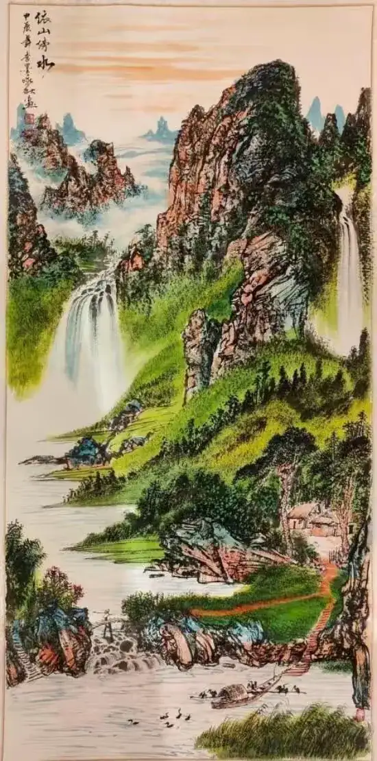 为什么现在大多数,工作室,家庭客厅,都喜欢偏爱挂山水画?背有靠山,一命二运三风水,山要厚重,有旭日东升,从东边升起,一轮红日,蒸蒸日上,有路,步步高升,平步青雲。也叫财路。桥上有个人,叫貴人,貴人遇水搭橋鋪路,挑著的柴,諧音叫財,叫貴人送財到家,进去有人家,土能生白玉,地可产黄金,这风水宝地!水田,天吉粮田靠山河,父坐高官子登科,左右有山圍繞,寓意左青龍右白虎,中間大山,叫做唯我獨尊,中流砥柱。太阳,這個詞寓意早上九點左右的太陽/意思是最好的時候。船一帆风顺,一顺百顺。滿載而歸。松树,祝事业长青,松鹤延年,树,老松树是家里老人长寿!小树是家里小孩茁壯成长,将来是国家栋梁,也是招财树。保平安!水是財,上善若水,万物不争,河水玉带环腰,水往低处流,人往高处走,古人说,水是财,两边流水八方来财,左右逢源,財源滚滚,成为聚宝盆,财不外漏,前有照后有靠,山主人丁水主财,前踏聚水背靠山,不出才子必出高官,水是养人,养健康!上善若水,好山好水好太阳,是福地生瑞气!画中主题,房屋,房屋寓意是安家定国!安居樂業,平安天下!树木掩盖房子,寓意是遠離喧囂鬧市,這是一方禅林净土,福宅宝地。家有千田靠山河。父做高官子登科!孩子一代更比一代强。鸿运当头,老师作品,用硃沙点红,古人说朱砂辟邪,十几年前跟风水大师合作过,所以风水构图都有一点相似,也是老师的主要风格。