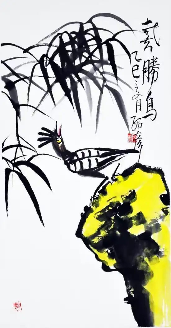作品名称:《戴胜鸟》作品尺寸:68cmx34cm,创作时间:2025年,作品材质:纸本水墨