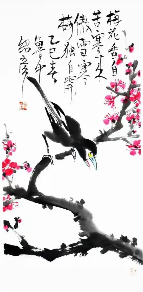 作品名称:《梅花小鸟图》作品尺寸:68cmx34cm,创作时间:2025年,作品材质:纸本水墨