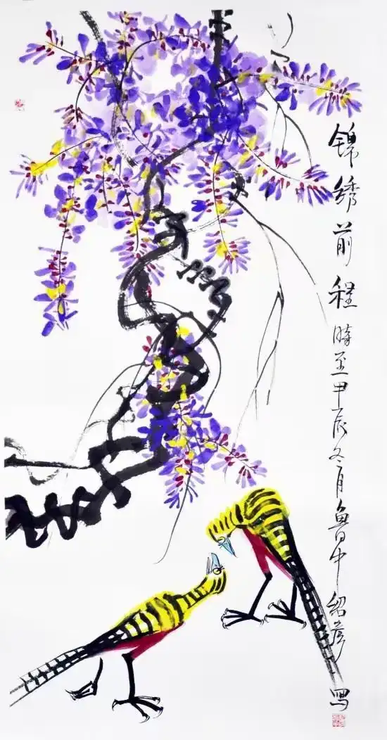 作品名称:《锦绣前程图》作品尺寸:136cmx68cm,创作时间:2025年,作品材质:纸本水墨