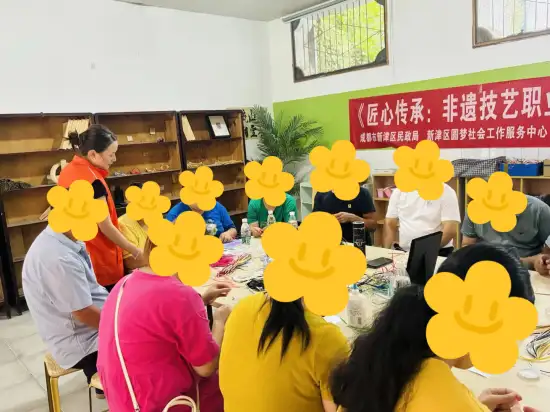 2025年9月12日下午2点至4点,成都市新津区圆梦社会工作服务中心在兴义镇康复复元驿站举办了非遗纸艺DIY发夹制作活动。活动共有16人参与,包括康复复元驿站工作人员、康复对象及家属。