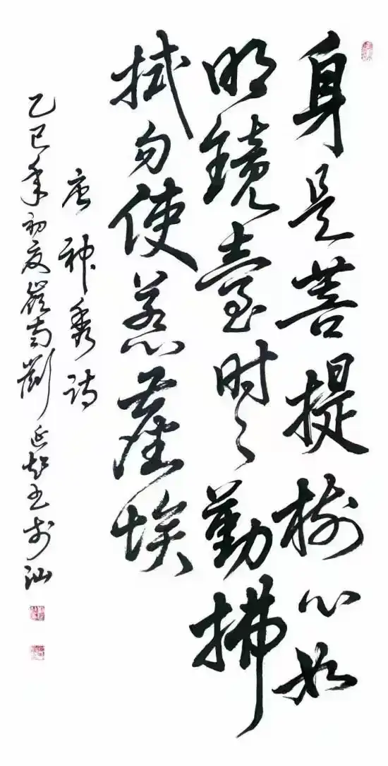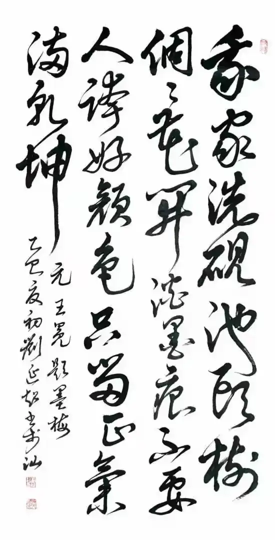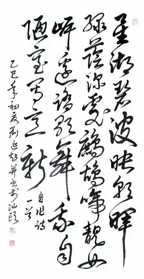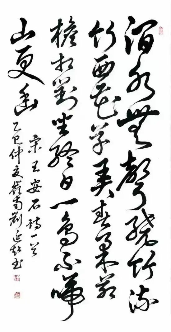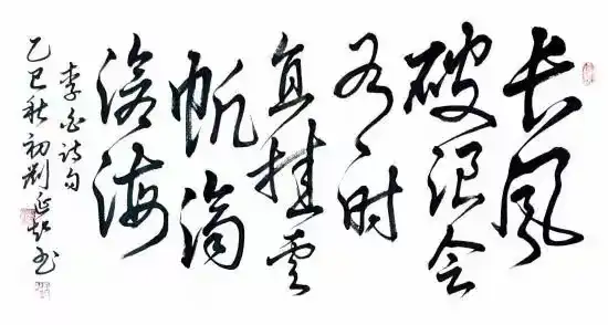 刘延超先生的书法习成底子相当扎实,他执笔历练碑帖数十年春秋,临池日久觉悟书道,写得诸书皆成博涉多优,尤其一手行草写出了钢筋铁骨的卓越精神,充满笔墨弘扬正能量的气场,是谓当代书法一面立骨传神的镜子!走进他的书法体系,观赏《观海听涛》,极是虬龙蜿蜒的姿态美,也具鸾凤徘徊的神情美。形神兼备装饰家居雅室,充满了文人书法的书卷气质。笔作遂心应手,不故意不刻意,因心行笔,结构险绝而能守正的线条结构,放笔可到天涯,收之则主重心。笔里有墨,墨里有笔,写得前后相随,高低有趣,为书法空间带来相当丰富的情景感,耐读耐品,可以装饰万家屏障,成为书法美化人们文化生活的优品,深受书法爱好者和艺术收藏者的喜爱。