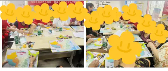 活动内容 :本次活动于2025年9月10日在普兴街道岳店社区三楼康复站开展,以“党建引领助康复,拼图识省爱祖国”为核心,活动伊始,社工老师向参与的康复者和党员同志介绍活动背景与意义,强调“我们中国如今发展强大,作为中国人理应满怀自豪”。随后展示中国地图,开启地理认知环节,引导大家认识全国各省及省会城市,重点提问“我们现在所在的成都属于哪个省”,以贴近生活的问题激发康复者的参与兴趣,接着明确本次拼图任务——共同寻找并拼出“美丽的新疆”区域,拉开活动序幕。在地图拼图环节,党员同志与康复者结成互助小组党员同志蒲同志在过程中积极引导,指出“这个活动对康复者很有意义,能锻炼动脑能力、手指灵活性和思维能力”。大家在协作中,康复者在党员同志的辅助下,逐步识别各省市板块的形状、位置,尝试将新疆板块精准嵌入地图,在动手实践中强化地理认知,同时在互动中提升社交与协作能力。活动尾声,蒲同志对本次活动进行总结,肯定了康复者的参与热情与进步,也强调了党建引领下社区康复服务的价值。