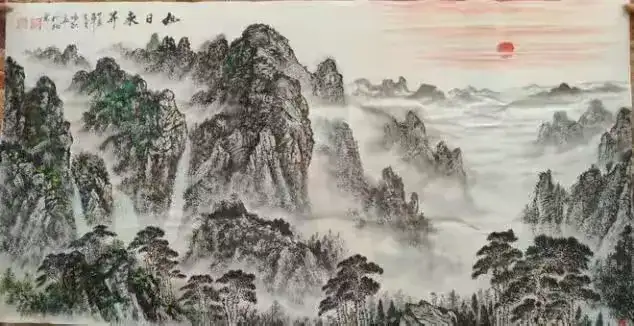1989年,他的作品获广西桂林大江南北书画展一等奖,这是他首次在省级赛事中崭露头角。当时的作品《漓江烟雨》,以细腻的笔触描绘了桂林山水的朦胧之美,既保留了阳太阳的写实功底,又融入了自己对漓江的情感,被评委评价为“‘秀’中藏‘韵’,有少年老成之气象”。1990年,他又以《泰山日出》获中国青年书画大赛一等奖,这幅作品跳出了漓江山水的清雅,借鉴李可染的“逆光”技法,用厚重的积墨表现泰山的雄伟,用一抹亮色勾勒日出的希望,展现出他对不同山水题材的驾驭能力。1991年,《三峡雄姿》获中南五省联展金奖,作品以“狂放”的笔触表现三峡的险峻,皴擦之间尽显江水的奔腾之势,被赞“笔墨有力量,山水有精神”。1997年,在全国书画人才艺术交流大会上,他的《黄山云海》获人才艺术奖,这幅作品将“积墨”与“留白”结合,云海的缥缈与山石的坚实形成鲜明对比,展现出他对笔墨语言的娴熟运用。