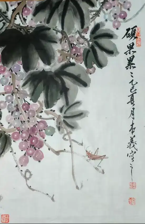 娄本义先生笔墨广泛,山水、花鸟、草虫、书法皆有涉猎,如百般红紫,各有芳菲。无论是巨幅创作,还是盈尺小品,那种水痕墨气,跃然纸上,其作画神态,亦见于法度与性情之间,而落笔如云烟,胸中之郁勃,笔底造化,都在瞬息之间,如此种种,足以见得他的文化修养、精神境界与智慧灵性。