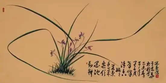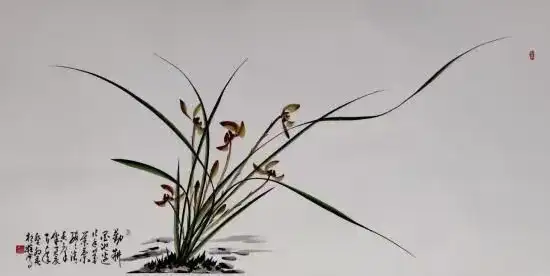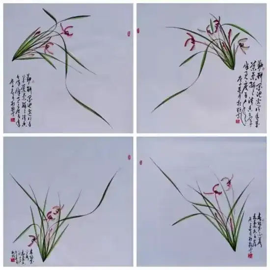 -九叶分(九笔兰)技法:以九笔勾勒一株完整兰草,看似极简却变化无穷,通过精妙的笔墨组合,创作出姿态万千的兰花佳作,极大拓宽了兰花绘画的表现维度。