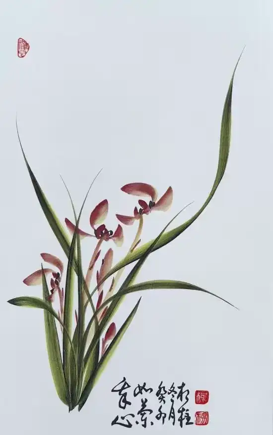 -写意工笔兰花艺术:以写意之洒脱笔法,营造工笔细腻的视觉效果,一笔双色浑然天成,兼具线条勾勒之劲挺与墨韵渲染之层次,实现渐变过渡,打破传统工笔拘谨刻板的桎梏,笔下兰花形神兼备、灵动鲜活;