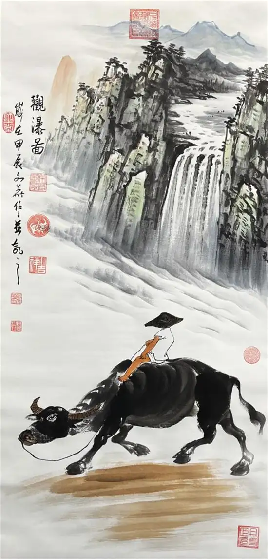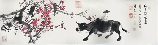首位携金墨牛作品走出国门,并传承齐白石一画两景独特技法,在国际舞台上取得重大成就;