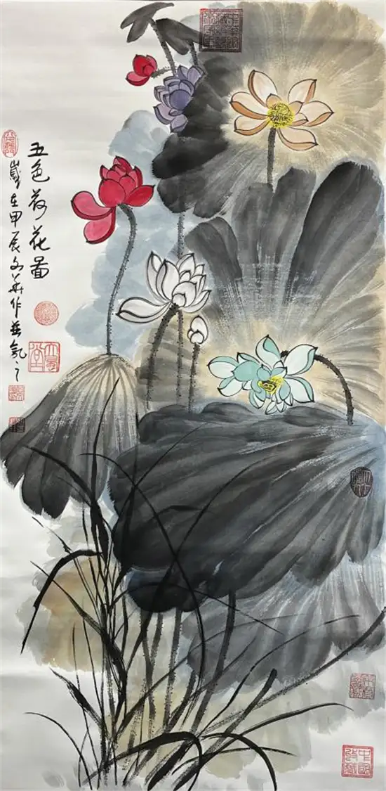 《五色荷花图》