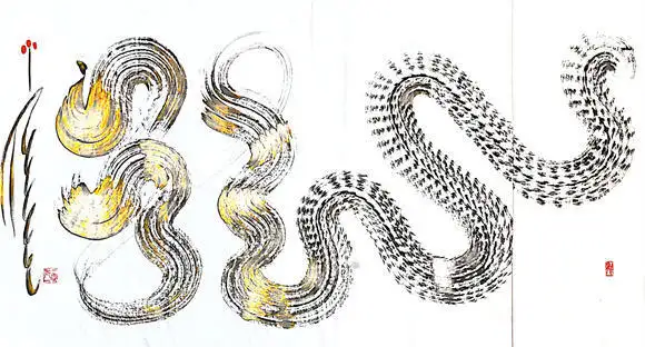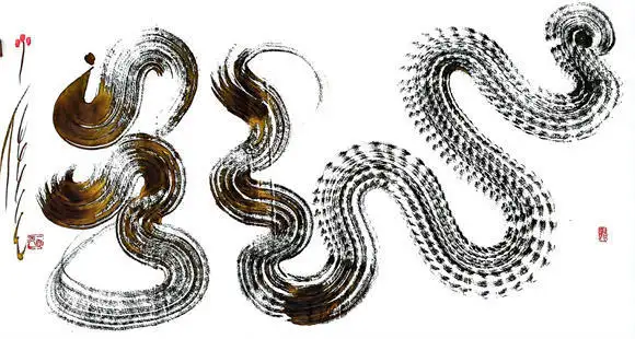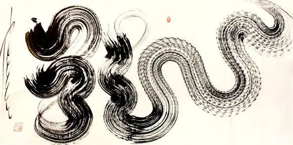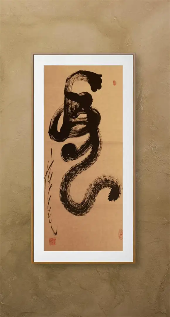 这幅《一笔龙》巧妙地传达了人类征服海洋、克服水患、抵御灾难的精神象征,龙的神圣形象彰显出恢弘壮丽的气势,仿佛直插云霄。在墨色的激荡下,龙的身姿矫健有力,神态神秘而权威,恍若实体,毫不拖泥带水地展现了中国文化的博大精深。这幅作品不仅仅是对中国传统文化的传承,更寓意着希望和奋进,让人心生敬畏之情。