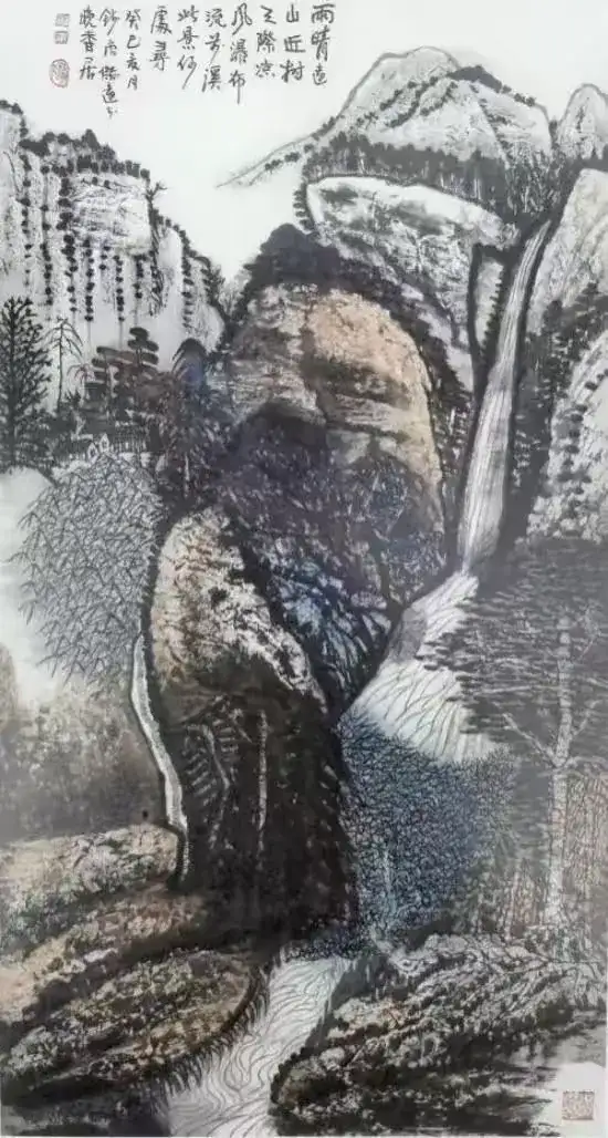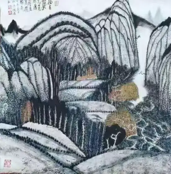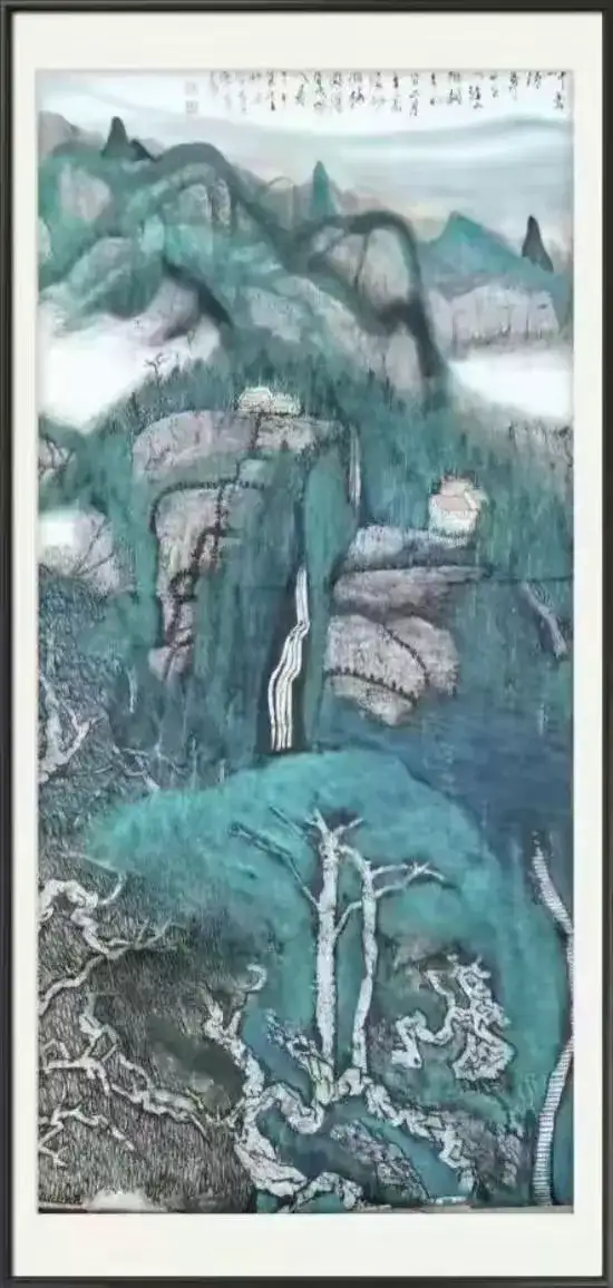 初见盛杰远的作品,便如同踏入了一个被艺术精心雕琢的奇幻世界。他的山水画,是自然与心灵的完美对话。在他的笔下,巍峨的山峦雄伟而不失灵秀,或云雾缭绕,或峻岭叠嶂,仿佛每一座山峰都在诉说着岁月的故事。山间的溪流奔腾或潺潺,水波荡漾间似能听见水流的欢歌。那些茂密的植被,用细腻而多变的笔触勾勒,仿佛每一片叶子都饱含着生命的律动。