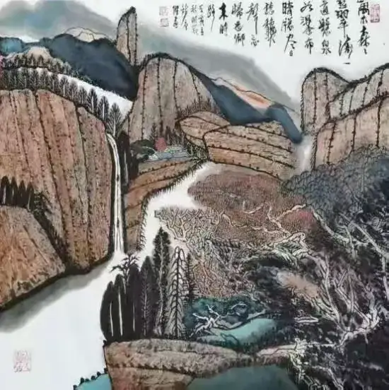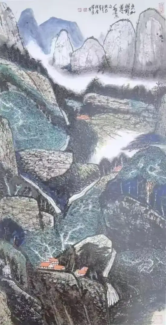 盛杰远的绘画风格独树一帜,融合了传统与现代的精髓。他扎根于中国传统绘画的深厚土壤,对笔墨的运用得心应手,皴擦点染间尽显传统山水画的韵味。然而,他又不拘泥于传统,大胆地引入现代的色彩观念和构图方式。他巧妙地调配色彩,使画面色彩既鲜艳夺目又和谐统一,形成了强烈的视觉冲击。其构图新颖独特,打破常规,以独特的视角展现山水之美,让观者在熟悉的山水题材中领略到全新的艺术感受 。