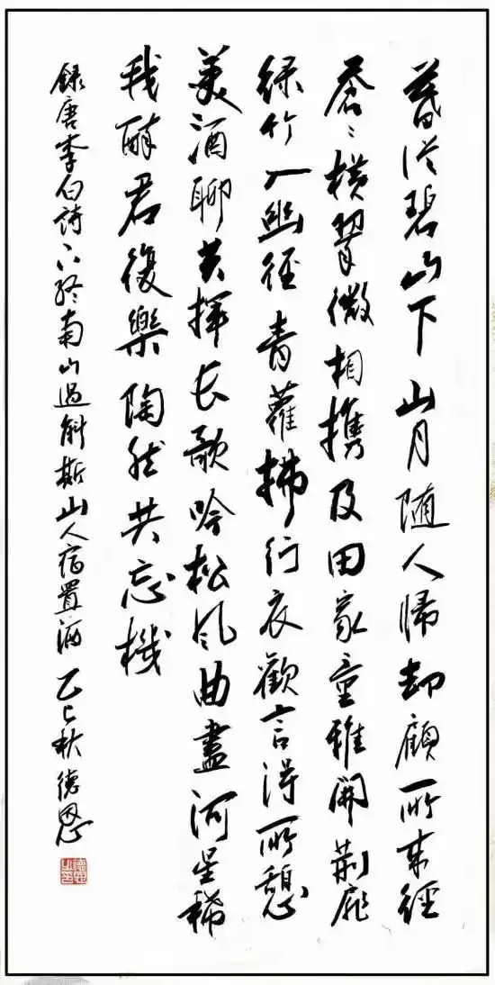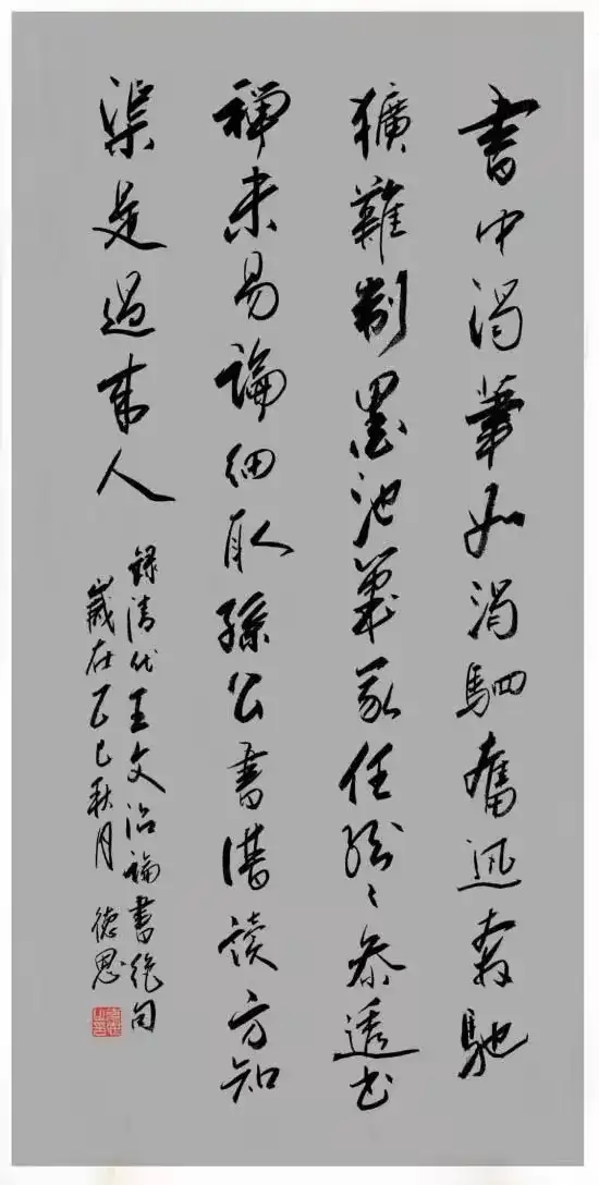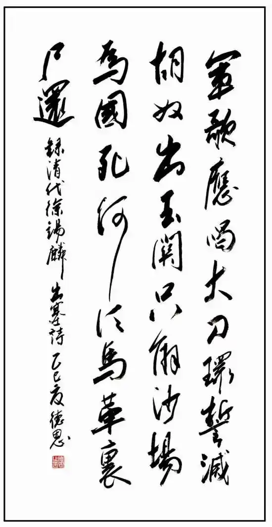 观陈德恩的行草书可知性情恬雅,俊逸洒脱,气度不凡。其书作讲求运笔 体势 呼应 气脉,将笔墨线条所蕴含的多种因素融入一张纸面,清劲爽逸,流丽生风,令观者体味到一种独有的飘逸气息(中国收藏杂志对刊登作品点评)。