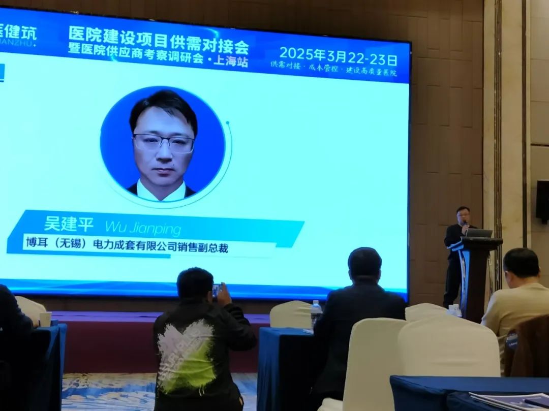 博耳(无锡)电力成套有限公司销售副总裁吴建平为本次会议致辞,在致辞中,吴建平介绍了博耳电力成套有限公司是专业从事智能配电的企业,提供医院一站式配电产品及系统解决方案,同时电管家平台为医院提供实时电力监测、故障预警和远程运维服务,保障用电安全。博耳医疗智能配电系统解决方案,主要涵盖40.5kV 及以下,多系列、多层次的成套产品架构,满足医院配电系统在用电可靠性和经济性的综合需求。博耳VENUS电源隔离系统是专门针对医院2类配电场所研制开发的 IT 电源隔离系统。它具有灵敏的监测和保护设计,实时监测设备、电网的绝缘、负荷、温度等信息,时刻保护、监测电网运行,在出现异常时立即动作并报警,以便医护人员和维护人员及时掌握电源状态。