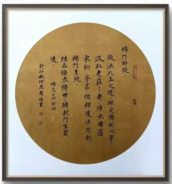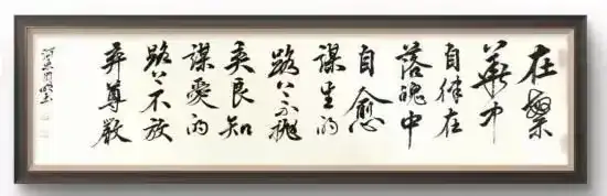 书法家周明先生写出《为天地立心》这件楷书镜心作品的时候,当是荡气回肠的表达!因为他执笔作书果然有与张载同样的精气神,区别张公以座右铭的方式畅志抒怀,周明先生则以翰墨形态表达内心的正大气象。人之所论“楷精法详”,周明先生的书法体系里果然写得“特为真正”。