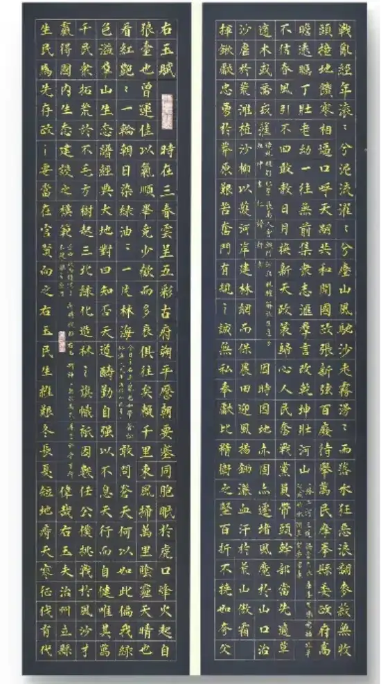 纵横鉴观他的楷书作品,基本上就是中国楷书一部可以真观于眼前的汗青史卷!周明楷书,不仅仅是他追求卓越书法功勋的个人显证,也是楷书深刻影响中国人文化心态、处世哲学的如复旧观。认认真真写字,端端正正做人,心正则笔正!小楷抄经,明心见怀,如《心经》。楷书箴言,触动心田,若《藏书为富》。抑左扬右,生动圆活,是《唐太宗百字箴言》!周明楷书承载着无量极多的文化迅息,成为书法渊妙代不绝人的典范!难怪他的书法作品被广泛收藏,金书锦字能不成和璧隋珠乎?