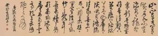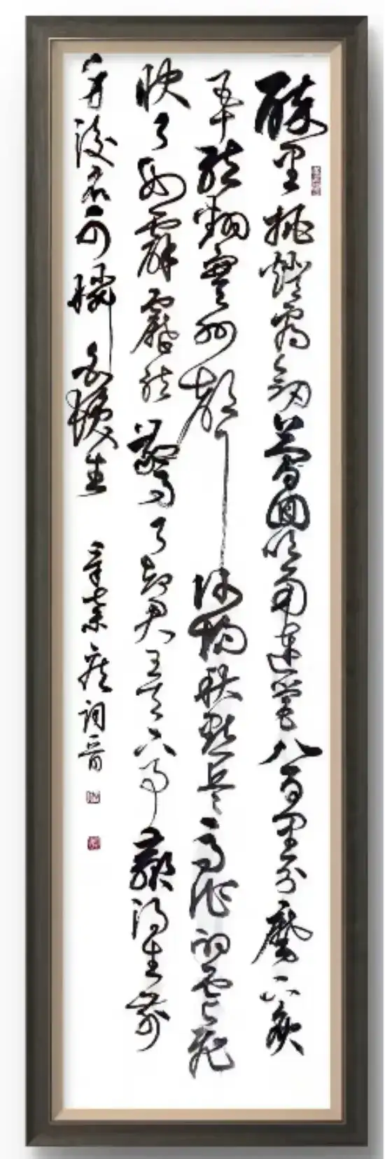 草书之稿始于汉代,崔瑗杜度始作其妙,迨乎伯英尤善其美!周明行草、草书袭承章草的丰姿多神,精研狂草的飘风骤雨,最能体现用笔千古不易的真谙,写下《天高云淡望断南飞雁》正是以狂继癫的惊雷驰电,写得纵横不群,迅驰骇人。果然是心手相师势转成,诡形怪状翻合宜。怀素草书的铁画银钩作其形,毛体草书的诗言志立其神,形神兼备,尤贵于神。当代草书一支笔的修养高度因书而现,正是翰墨横空的巍仪姿态!