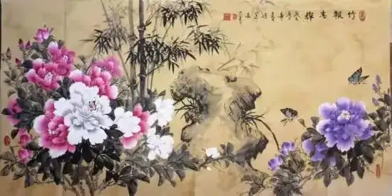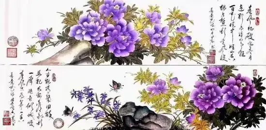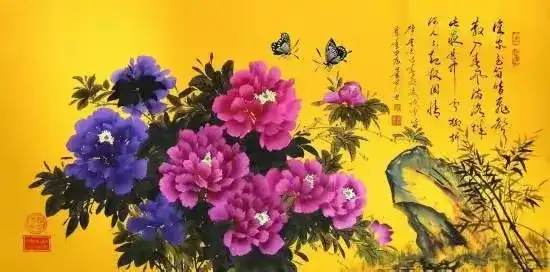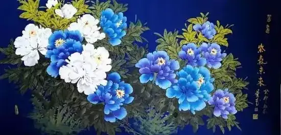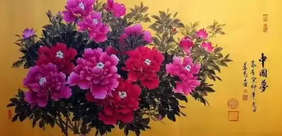 清新脱俗、富贵天香、花色大美的牡丹花成为聂兰花永恒演绎的经典,正应了“庭前芍药妖无格,池上芙蕖净少情。惟有牡丹真国色,花开时节动京城。”丰富的故事寓于画中,处处表现了花开时节的灿烂美好,洋溢着蓬勃的生命力和对生活的美好祝愿。
