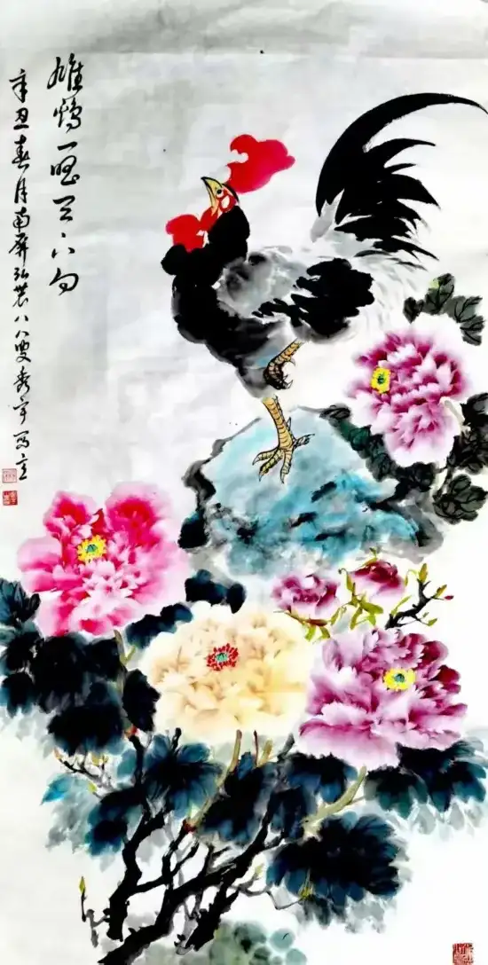 吴昌硕擅长梅兰、齐白石擅长画虾,徐悲鸿擅长画马、吴作人擅画骆驼、金鱼,而杨秀宇更钟情于牡丹,但杨秀宇笔下的牡丹映入眼底时:姹紫嫣红的花蕊、花瓣在摇曳中绽放妩媚,红的灼灼如火,白的玉骨冰心;婀娜多姿的枝叶在酣畅淋漓的笔墨中姿貌妖娆,美轮美奂,精彩纷呈;精工细琢的具象与浑沦悠远的意象交相辉映,熠熠生辉。迎面而来的艺术气息,瞬间拨动笔者的思绪,遐想无限,流连忘返。杨秀宇对牡丹的热情讴歌,对眼中之美的深情赞美,也似若隐育一种飘逸洒脱的文人气息,风韵卓然,蕴含丰富,由此,笔者情不自禁地迸发窥探画家杨秀宇背后的精彩。