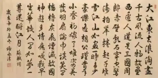 当代著名书法家谢永清先生自幼酷嗜书法,曾遍临历代名家碑帖,广集博釆,兼学并蓄,可谓是是观千剑而后识器,也正因此他将历代碑帖中的精粹转化成为自己的笔墨语言,从而形成了古典雅质、势欲飞舞、舒展流畅的个人书风。其作品于平淡清秀中见俊美,于端庄凝重中显功力,气度不凡,大雅上品。