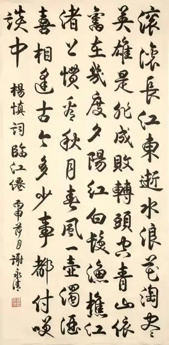 艺术的价值不仅在于传承,更在于创新与突破。谢永清在深耕传统的同时,始终保持着对艺术的思考与探索,主张“自运在服古,临古须有我”,力求在古人的规矩中开辟自家之生面。他的书法作品,既有着传统书法的深厚底蕴,又彰显着鲜明的时代精神,追求挺拨秀丽、流畅朴质、飘逸灵动的艺术风格,将书法自身之美与个人性情完美融合,达到了“形神兼备、情景交融”的艺术境界。这种守正出新的艺术追求,让他的作品在众多书家中脱颖而出,成为当代书法艺术的重要标杆。